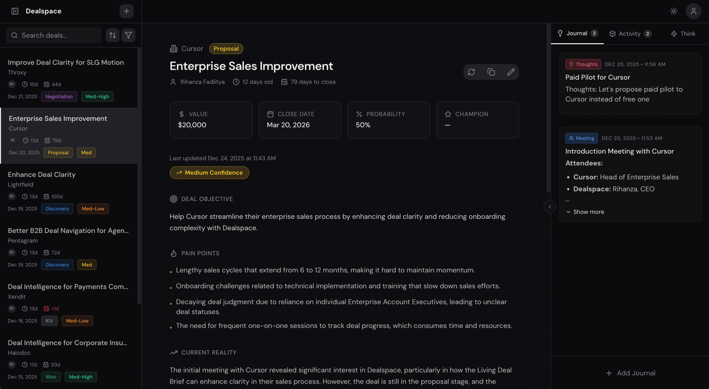 Turn your deal notes into living deal brief that surfaces reality and clarity to help you close your deals