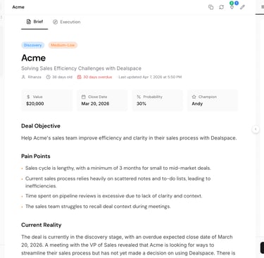 Think, brainstorm, challenge and research anything about your account and strategy to win your next big deal.