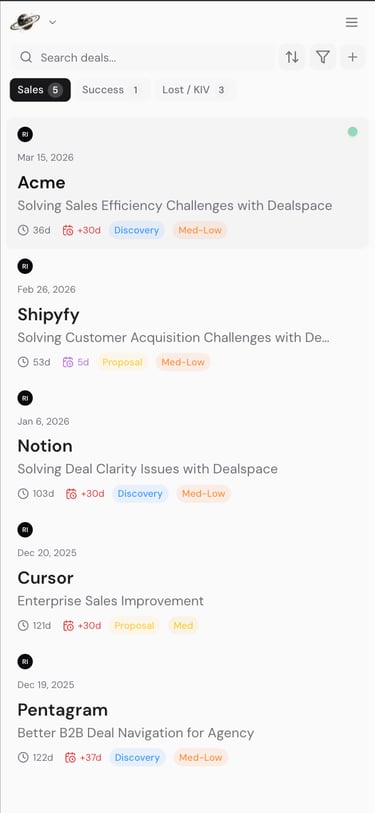 Keep every deal's context in one place, decide your next move, and move opportunities forward
